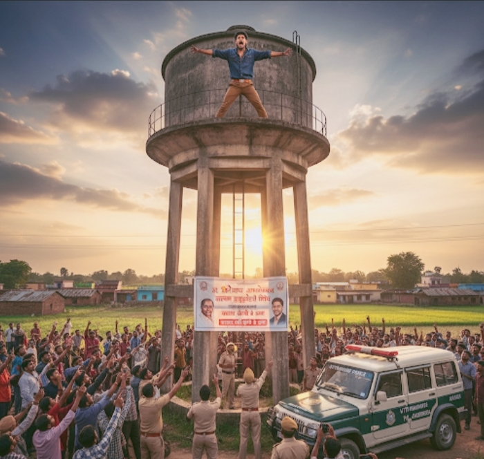 पावटी गांव में उस वक्त हड़कंप मच गया जब कालू सिंह नामक युवक, अपने परिवार से पैसे न मिलने से गुस्सा होकर, गांव की सबसे ऊंची पानी की टंकी पर चढ़ गया और जोर-जोर से कूदने की धमकी देने लगा। उसका यह ‘वीरू’ स्टाइल वाला प्रदर्शन देख नीचे लोगों की भीड़ जमा हो गई।
